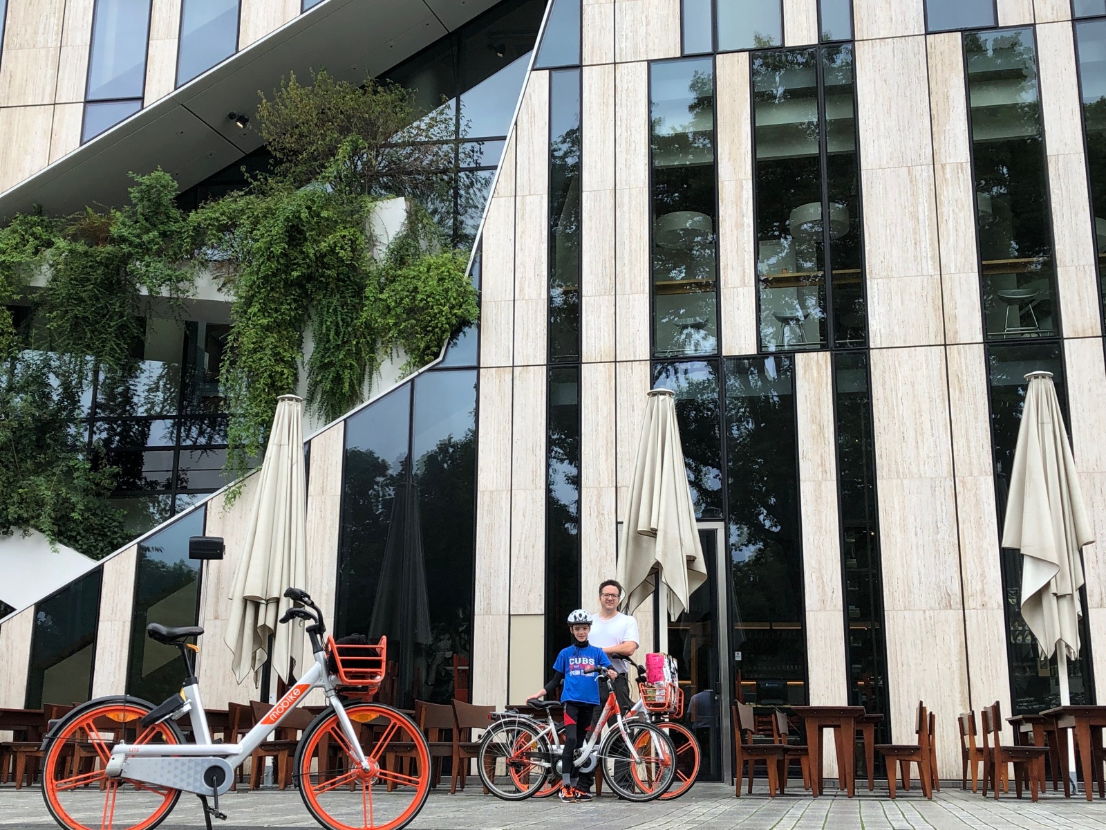 So, we had the train down. But what about all those bike lanes? And entire families on bikes, with cargo carriers, even (which we have always admired in Portland). We had many bike rental options, so we we started using these easy-to-find and use utilitarian bikes. And we found that it was much easier to get around by bike than we imagined. This was great for us adults, but there were no obvious ways to rent a kids’ bike. And boy oh boy was that kid ready to go-go-go on a bike. Or a scooter. Or a moped. Insert many many requests here for riding on any and all.